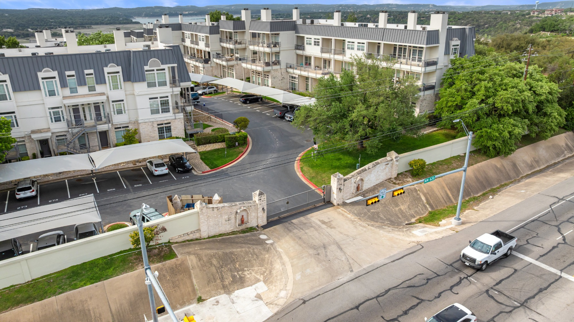 Welcome to waterfront condo living in the gated community of The Villas on Lake Travis. This property offers an active lifestyle filled with amazing amenities including 2 pools and spas, gym, tennis, basketball, private garden, dog area, reserved covered parking for owners and their guests plus a tram to the private, covered boat dock with party deck on the lake. Unit V267 is a gorgeous move in ready 2 bed, 2 bath, 2 living unit. The main living is an open plan in a step down layout plus a back patio with a courtyard view of the French architecture. The kitchen has granite countertops, stainless steel appliances including refrigerator, electric stove and overlooks the dining room. Large windows throughout offer plenty of natural light. Spacious primary suite at the back for added privacy boasting tall ceilings and a jetted garden tub and shower. All appliances convey and recent improvements include HVAC system, stained concrete floors plus a pine barn door for the study. Close to the unit’s reserved covered parking spot #267 (plus there are 7 guest parking spots out front), pool, mailbox, dog area and exit gate on 620/General Williamson with traffic light for easy departure. HOA fee of $615/month covers: basic cable, insurance on structure, internet, sewer, trash and water. Come see how wonderful it is to live at the lake.